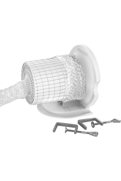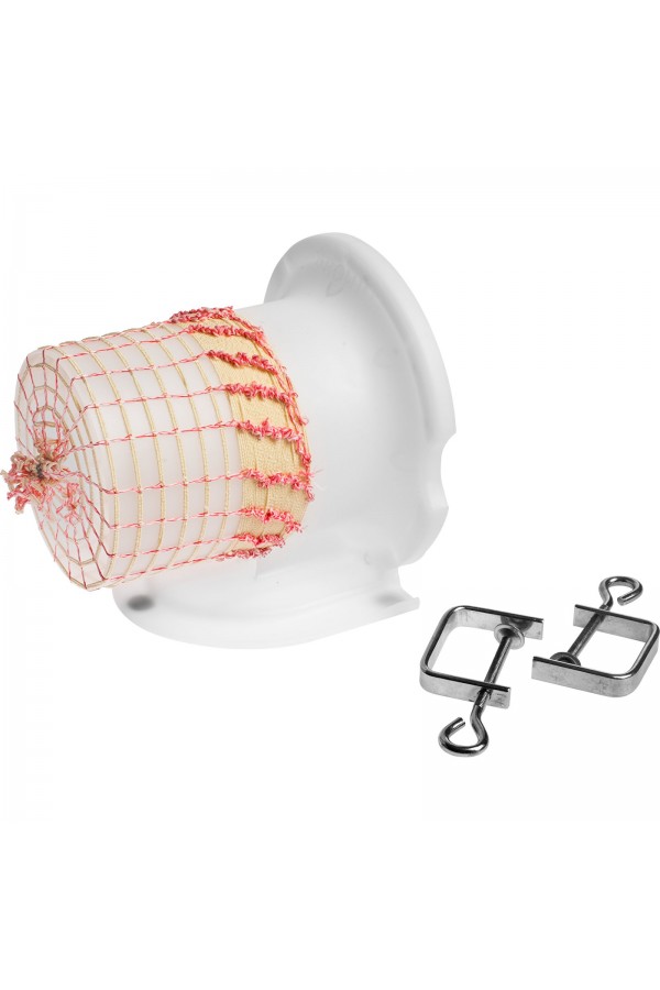 Denne innovative netapplikator vil forbedre effektiviteten af dit køkkenarbejde i forbindelse med fremstilling af hjemmelavede kød- og osteprodukter. Filet kanonen har et specielt design - den har en tragtformet flange, der gør det muligt for én person at putte alle slags produkter i nettet, og undgå problemer med, at kødet glider ud. Brugen af produktet er meget praktisk takket være muligheden for at fastgøre det til en bordplade eller anden overflade i forskellige positioner – lodret eller vandret. Indholdet lægges i nettet i takt med tyngdekraftens retning. Ved at bruge Filet kanonen sparer du tid. På én gang kan du trække en netsektion på den, der er tilstrækkelig til flere stykker kød eller ost.