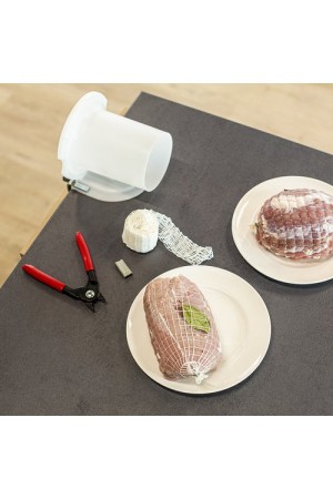 Til skinker og ost. Dette gør det meget lettere at lægge kød eller ost i net før videre forarbejdning, f.eks. stegning eller rygning.