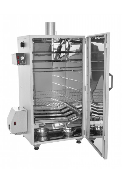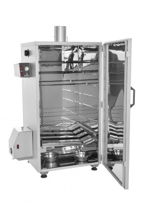 Heri er der kroge og/eller hylder til råvarerne og et varmelegeme, der under elektrisk temperaturkontrol ”brænder” det røgsmuld, som en lille stoker (spiralformet snegl) presser ind til varmelegemet.